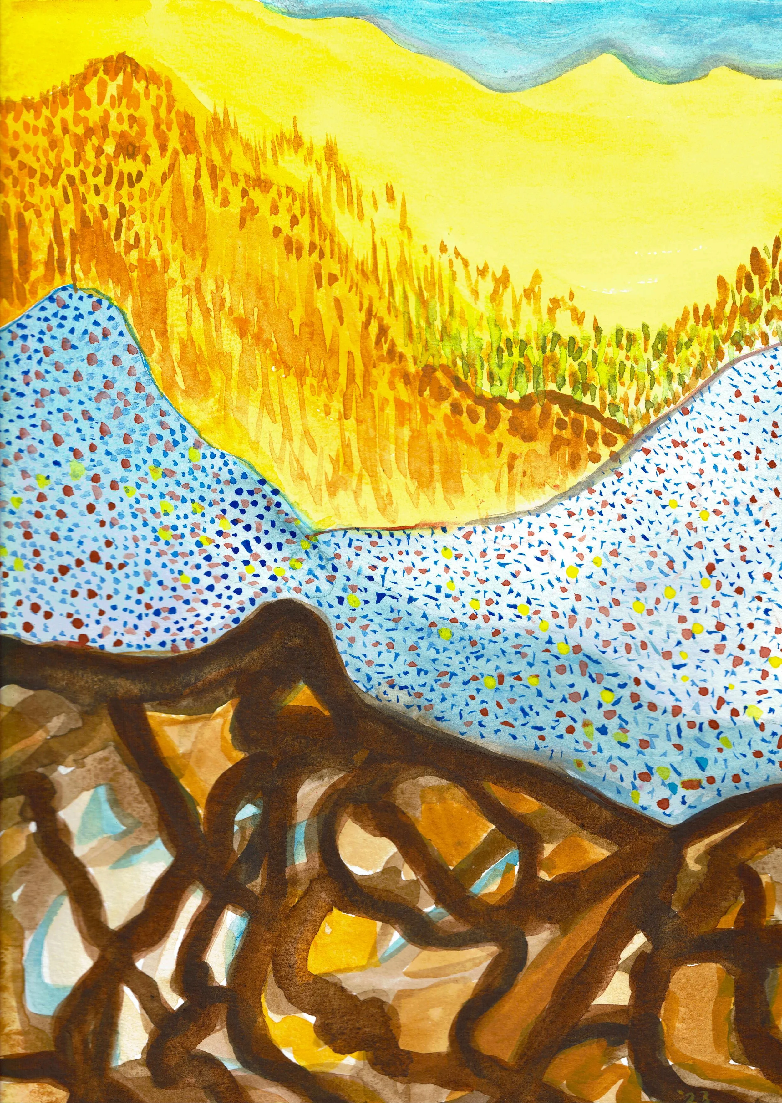 Ideo-screen Isles, 2020 ink & gouache on paper, 11" x 13.5"